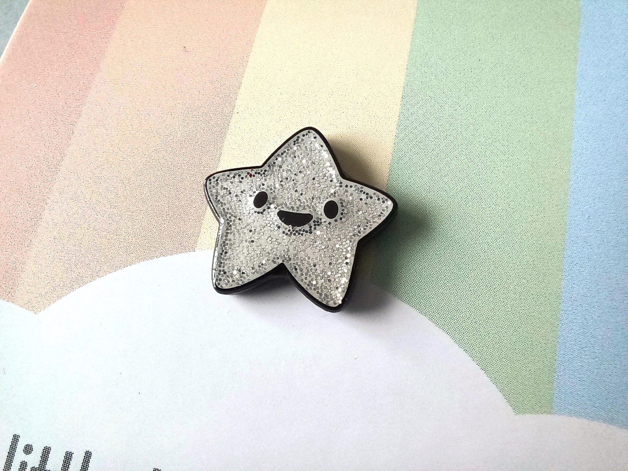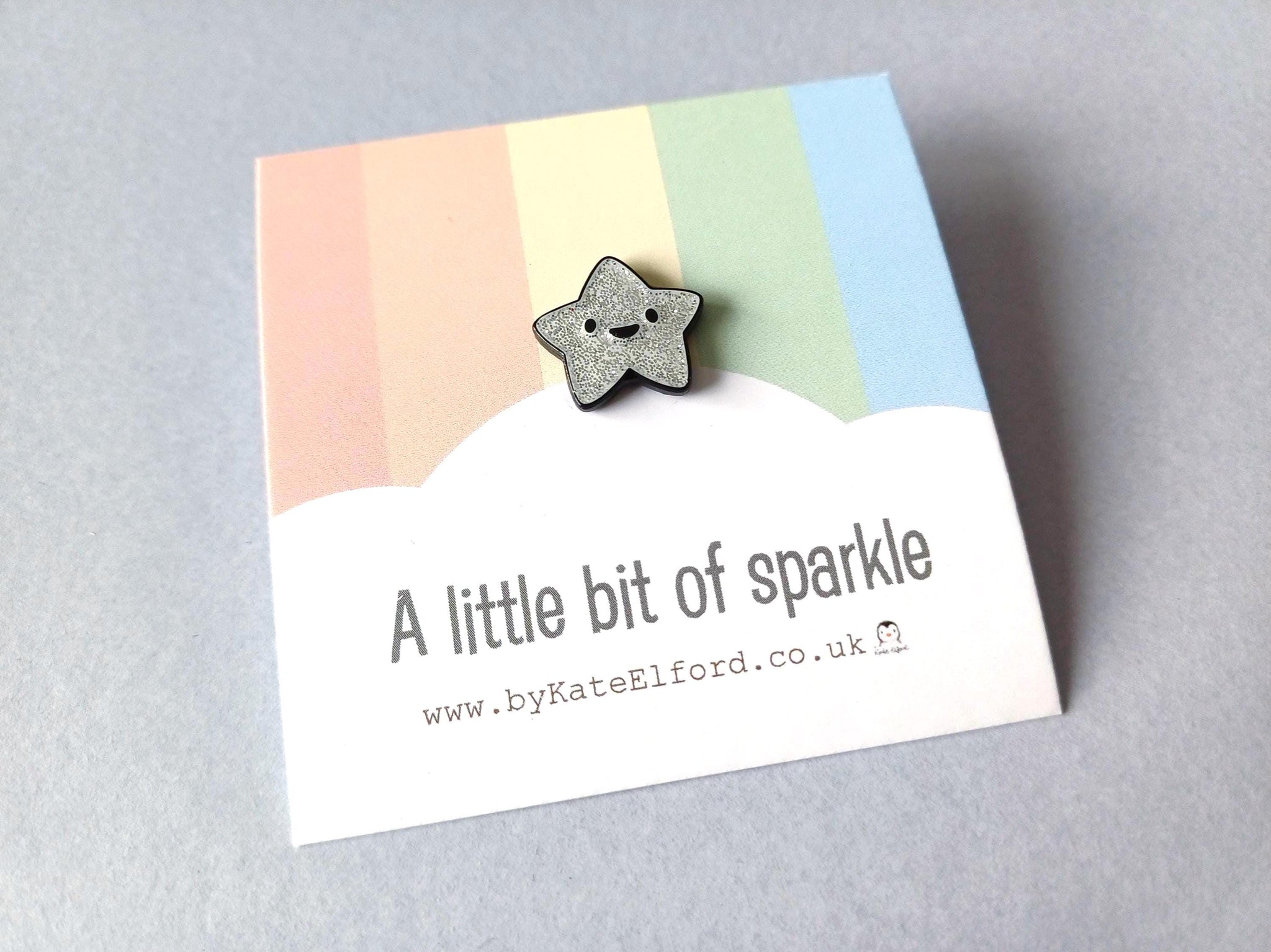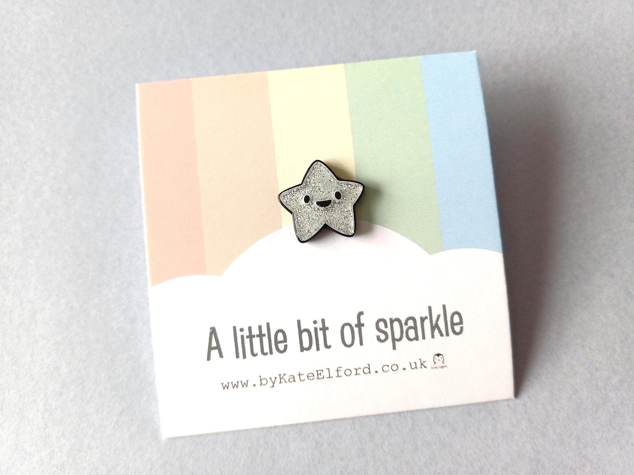 The brooch is a black colour metal with silver glitter. It has a layer of resin to give a very smooth shiny finish.