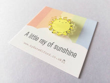 A cute smiling sun with it's arms outstretched. It is made from clear recycled acrylic.