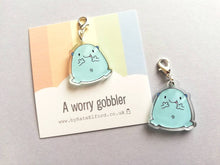 Worry gobbler is part of the blob family, there is also a blob of happiness, a love and hug, a blob of luck, a little bit of courage, a little bit of sparkle, a fuzzy feeling, a positive vibe, a little ray of sunshine and a hug available.