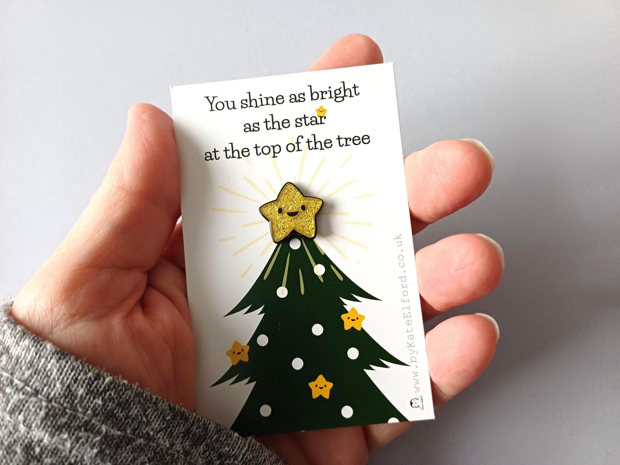 It will be sent on the display card pictured, which has the wording 'You shine as bright as the star at the top of the Christmas tree'