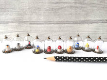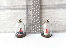 They are very little glass domes, with metal fittings. They measure approximately 3.2cm including the metal loop.