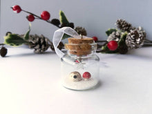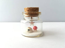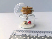 A tiny hedgehog and red mushroom sealed in a mini glass bottle.