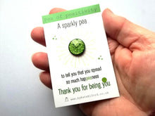 It will be sent on the display card pictured, which has the wording a sparkly pea, to tell you that you spread so much happiness. Thank you for being you.