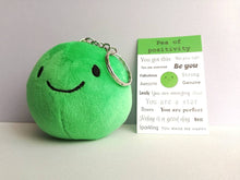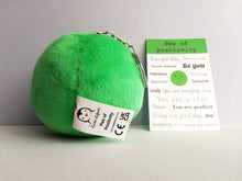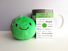 A soft and squashy little pea keychain to give to show a friend you care and remind them how special they are.