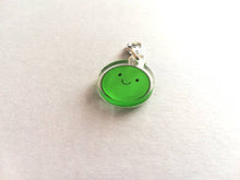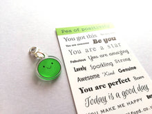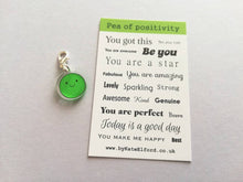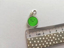 It is a very little happy pea and measures only 1.8cm across. It has the same design on both sides.