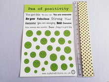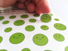 There are 30 little pea stickers on a sheet, all different sizes. The words are also separate little stickers. If you look at the second photo you can see the cut line around the stickers..