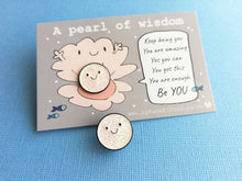 A glittery white pearl which will be sent on the display card pictured, which has lots of positive words and messages.