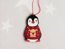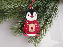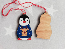 Wooden penguin Christmas ornament.
