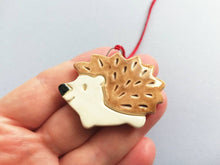 This is a small pottery tag, it measures approximately 4.5cm across and is strung with red cord.